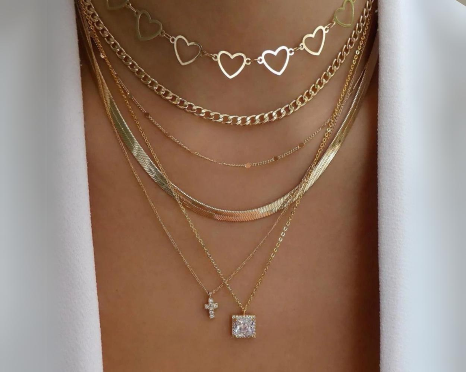 The Multi-Layer Necklace Set features a collection of gold-tone necklaces with trendy, boho-inspired designs. Each piece is adorned with delicate crystal pendants and can be worn together for a layered look or separately for a more straightforward style. This versatile set is perfect for adding a touch of elegance to any outfit and makes a beautiful gift for any occasion.